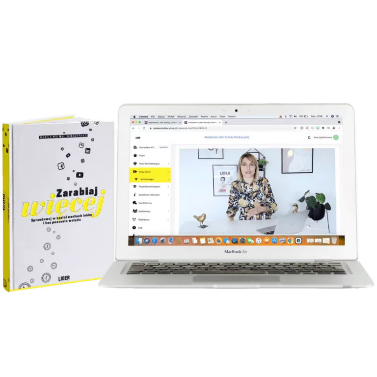 Nie będziemy Ci mówić, jak sprzedawać kursy w social mediach W książce oraz w kursie prezentujemy gotowe schematy działań i treści do edycji, przykłady reklam oraz możliwości domykania sprzedaży. Sami prowadzimy 5 marek, które sprzedają produkty edukacyjne oraz kursy w social mediach.